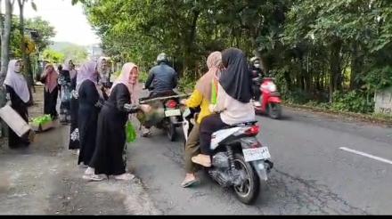 Ibu-ibu PKK Desa Pogalan mewujudkan aksi nyata dengan berbagi takjil ke pengendara yang lewat di depan Balai Desa Pogalan.